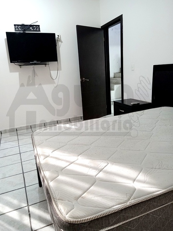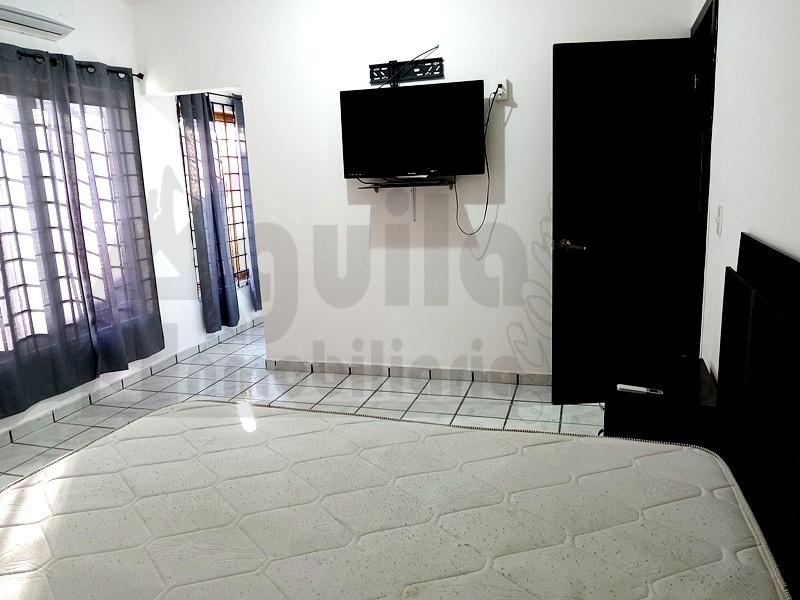 *La recámara principal tiene clima, cama con colchón y elegante cabecera, buró, TV, escritorio con silla. En esa recámara principal hay un amplio cuarto-vestidor y un baño completo.